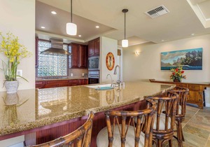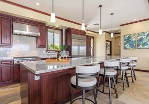 Access to Wai'ula'ula private amenity center is included with rental. Amenity Center includes lounge with ample seating, complete kitchen, BBQ, large flat screen TV, fitness center, infinity pool, "keiki" or children's pool and hot tub.