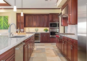 This 2,100 SQ.FT. GROUND FLOOR condominium was new in 2006 and offers spacious indoor living areas and an expansive wrap-around outdoor patio/lanai. The unit has coffered ceilings in the great room, dining room, and dual master suites, zoned air conditioning throughout, plantation ceiling fans, and cherry wood cabinetry. The large kitchen has an island for casual seating, granite countertops, and is equipped with top-of-the-line appliances.