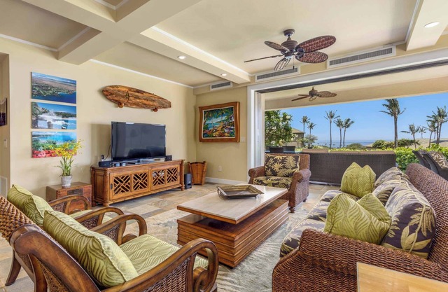Wai'ula'ula A101 is located near the exclusive Amenity Center and offers panoramic and unobstructed views of the ocean, golf course and sunset.