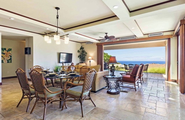 Wai’ula’ula is located on the mountain side of Mauna Kea Resort and has a private amenity center that includes a recreational pavilion center equipped with complete kitchen, BBQ, lounges with ample seating and large flat screen TV, fitness center, infinity pool, keiki pool and hot tub.