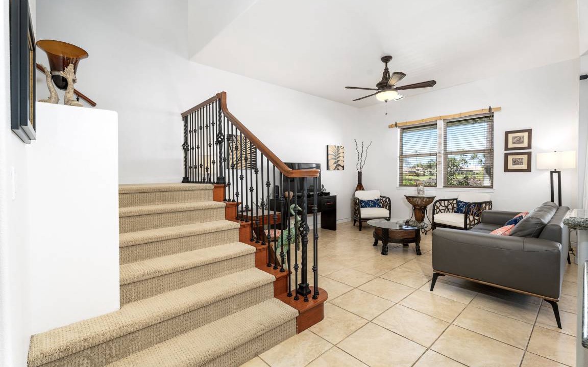 Relax and unwind in this beautifully appointed two-bedroom, two-and-a-half-bathroom townhome in the prestigious Mauna Lani Resort. Perfectly situated on the golf course, this villa offers stunning fairway views, breathtaking sunsets from both levels, as well as glimpses of the ocean from the upper lanai.