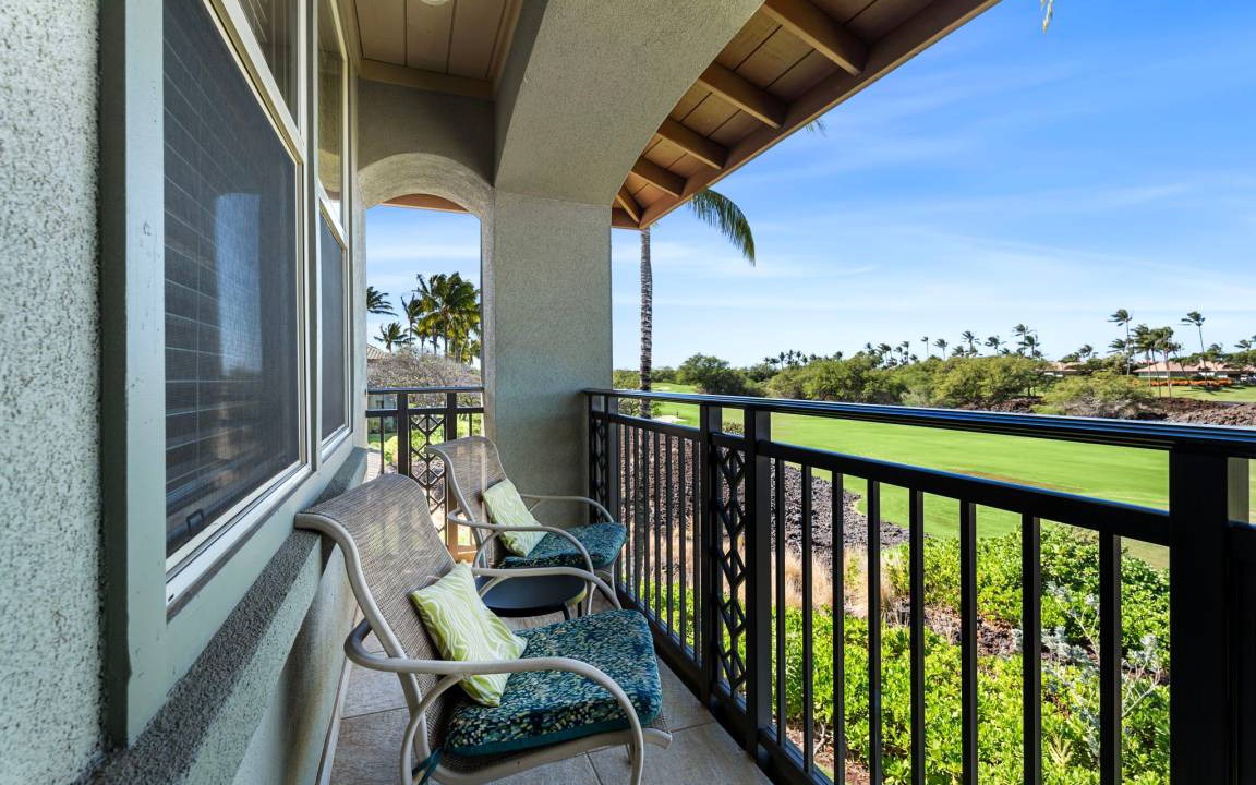 Spectacular Views: Overlooks the lush golf course with swaying palms and vibrant sunsets, plus ocean glimpses from the upper lanai.