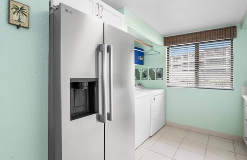 This top floor gem of a condo is the perfect option for your Hawaiian Vacation. Exquisite bamboo flooring throughout the living room and master bedroom. Raised vaulted ceiling in living room and dining room allow for a truly voluminous feel!