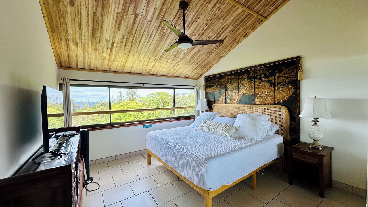 One of the highlights of this exceptional penthouse is the lovely Lanai, where you can relax and enjoy the tropical views. Imagine sipping your morning coffee as you watch the world wake up or enjoy a glass of wine at sunset as whales breach in the distance. Hilo offers ever changing weather from sun to tropical rains to magical rainbows all in the same day!
