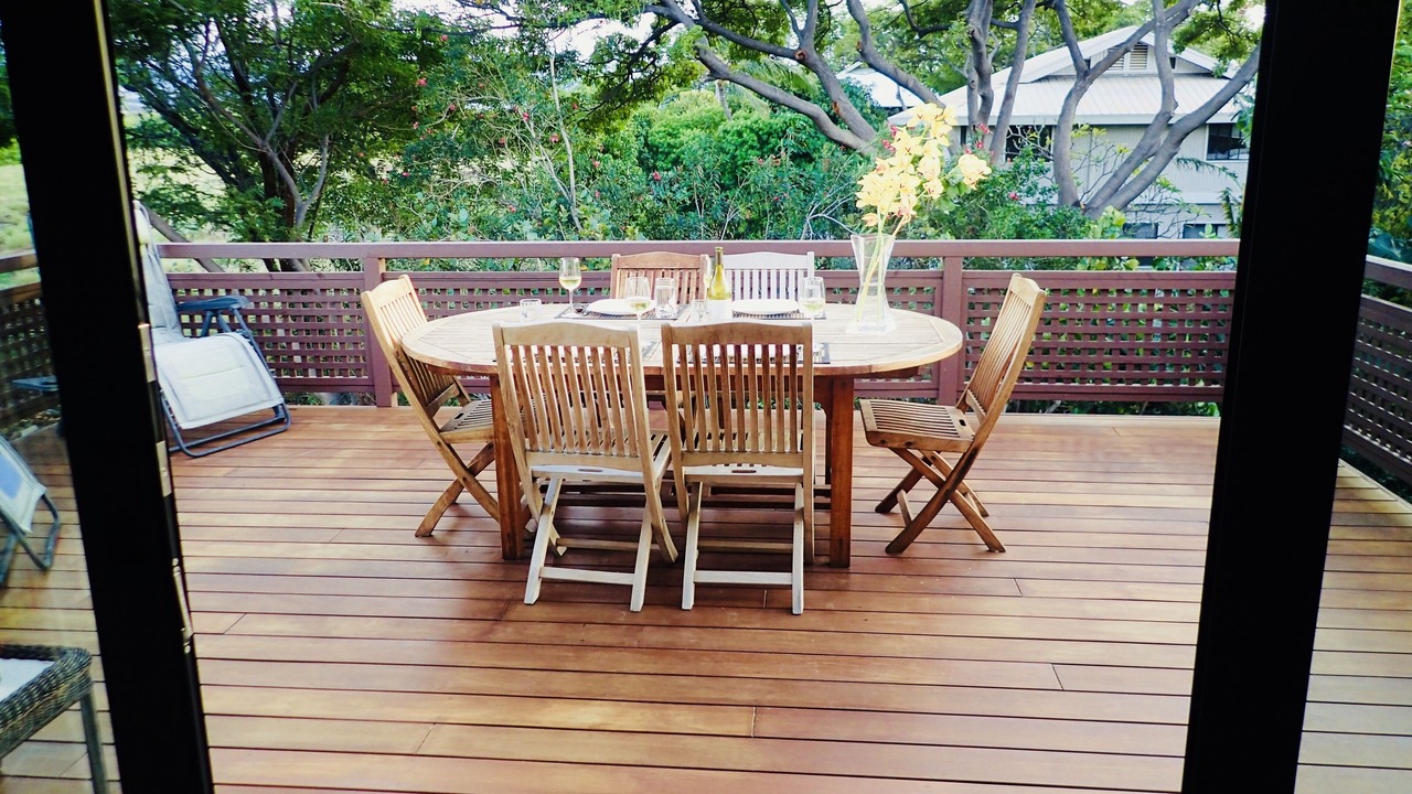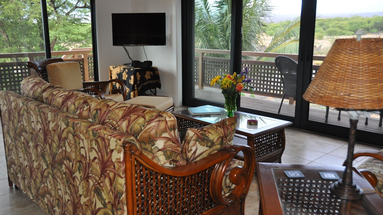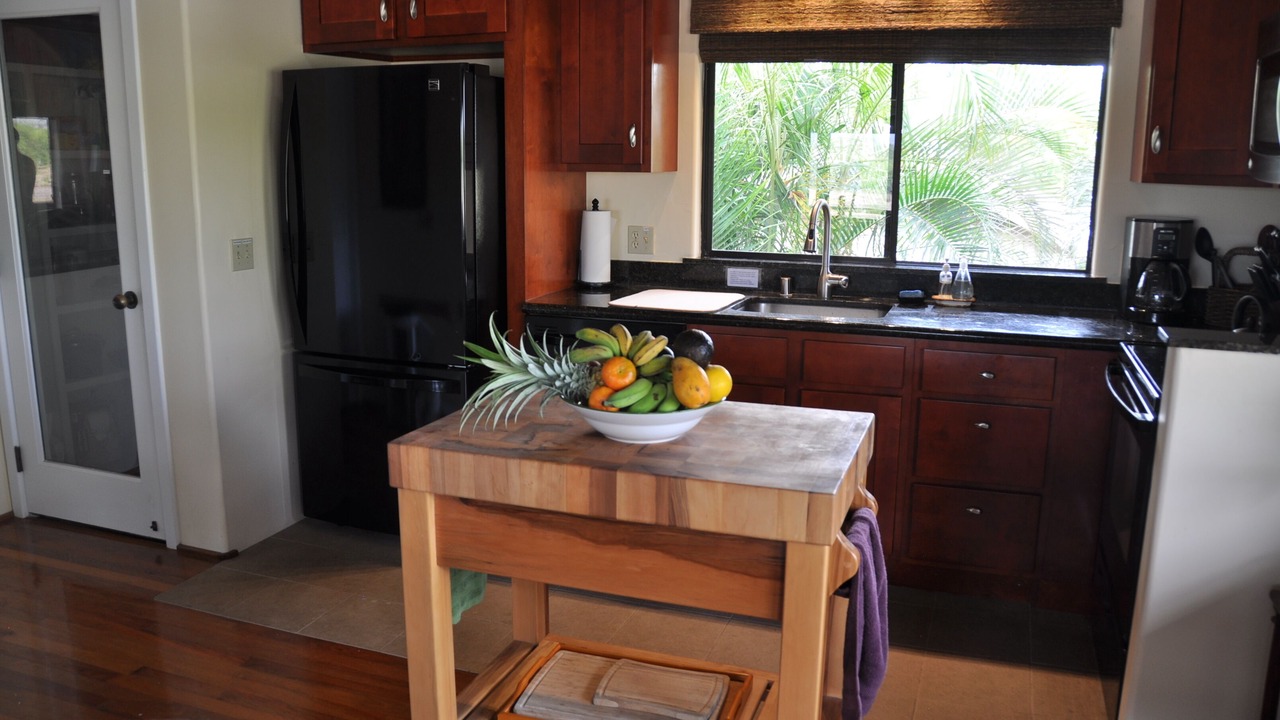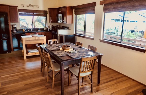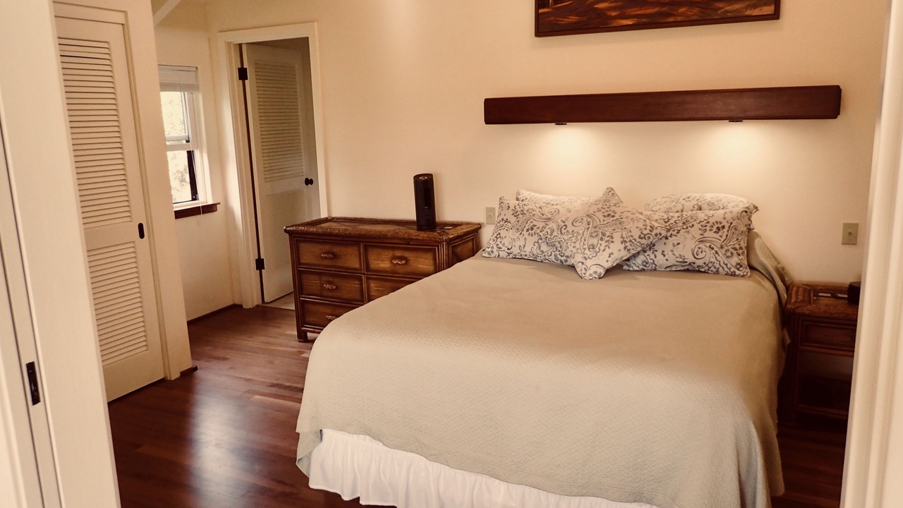 E 'Aka 'Aka Mau House is uniquely set up to accommodate family and friends, but still afford privacy. The upstairs area is air conditioned for warmer days and has a spacious living room; the cathedral ceiling with two fans gives the space a light, airy feel. This same ambience carries over to the dining area, where koa trimmed windows and wooden floors show off the 'Hawaiian plantation' decor of the room. Open the large sliding glass doors and windows to allow in the breeze! The galley kitchen is well equipped with everything necessary to prepare any kind of meal, from a Thanksgiving turkey to Hawaiian and Asian fare. Granite-topped counters, hard-wood kitchen island, and a large, shelved pantry provide the ideal space to create meals for family and friends. And a Weber Spirit II propane grill is readily accessible on the deck, perfect for grilling that special Hawaiian dish!