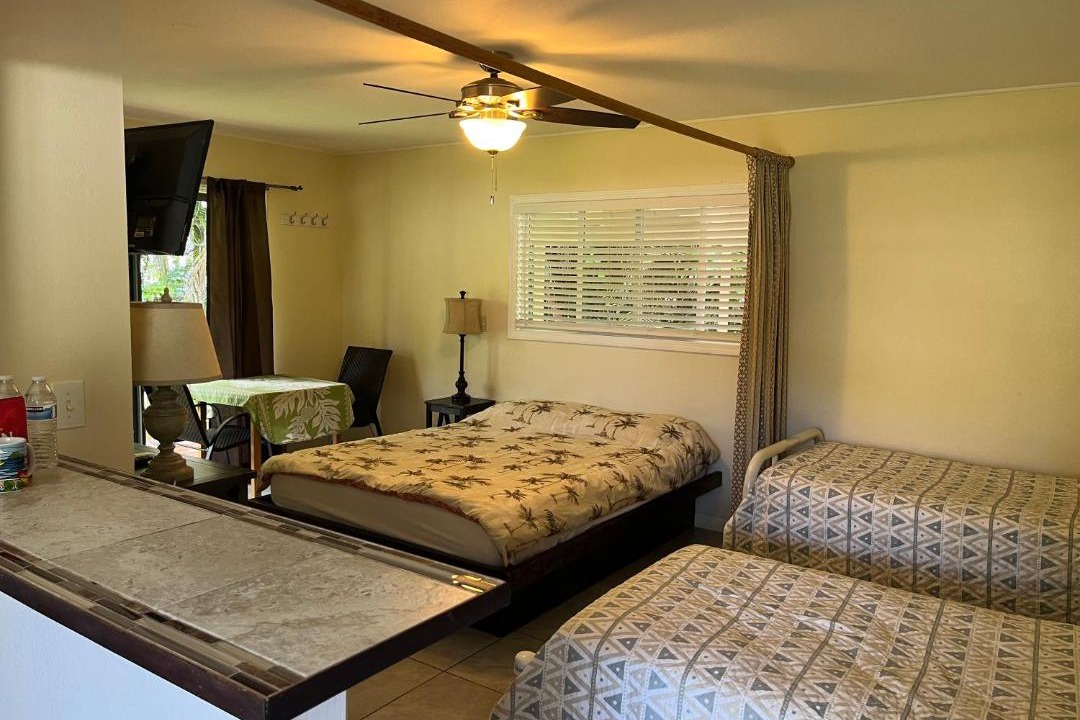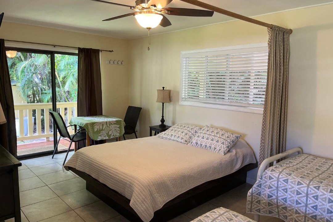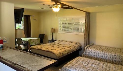 Aaron’s cottage provides rooms in Hilo near Kealoha Beach Park and Carlsmith Beach Park. With a garden, the 3-star hotel has air-conditioned rooms with free WiFi, each with a private bathroom. The property is non-smoking throughout and is located a 8-minute walk from Onekahakaha Beach. At the hotel, each room includes a closetand a balcony with a garden view. Selected rooms contain a kitchen with a fridge and a microwave. Guest rooms in Aaron’s cottage are equipped with a flat-screen TV and free toiletries. The Pacific Tsunami Museum is 3.3 miles from the accommodation, while Lyman Museum & Mission House is 3.6 miles away. Hilo International Airport is 1.2 miles from the property.