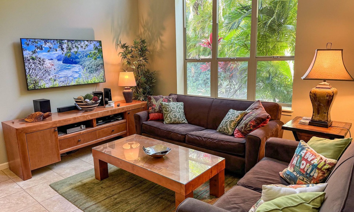 After a day at the resort or roaming the Big Island, relax in our two bedroom, two full bath, town home. Unit #301 a 3 min. walk to the pool, is a good choice for those wanting privacy with an upstairs master suite (New king TEMPUR-Adapt bed and adjoining master bathroom) and a completely private bedroom on the main floor (King bed and adjacent bathroom). Generously supplied with beach gear, kitchen supplies and luxury linens.