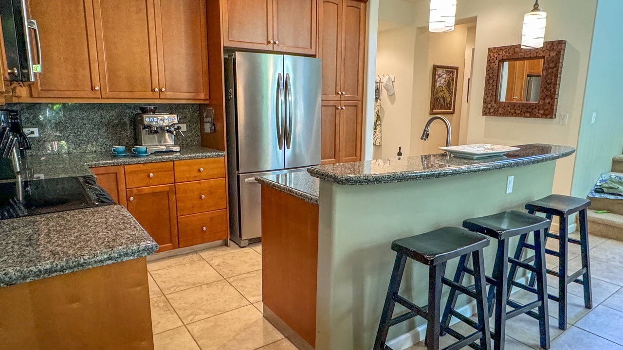 Townhome within walking distance to the beach, ocean, restaurants, shops, ancient petroglyphs, golf and more. The amenities such as beach gear - chairs, coolers, boogie boards- and a large lanai with BBQ make for a great vacation. It is private for two couples or a family with one king bedroom upstairs and one king bedroom downstairs.