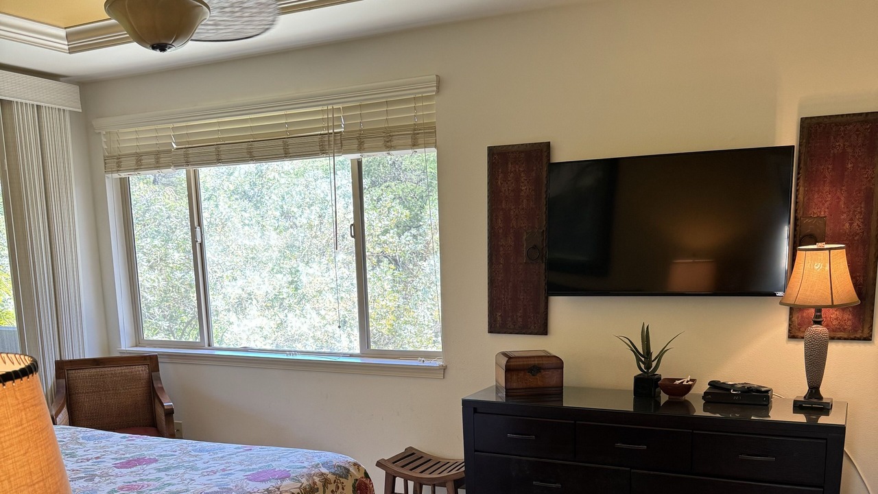 2 bedrooms 2 bathroom (For maximum privacy -Master bedroom upstairs, second bedroom on main floor each have a Cal King and TV )