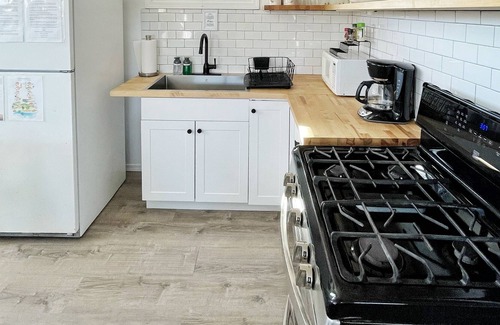 -Fully equipped kitchen with pots/pans/dishes/spices/condiments