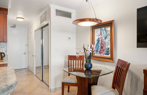 Lahaina Shores is a charming boutique resort located directly on the oceanfront in the heart of historic Lahaina Town. Unit 307 is a 3rd-floor oceanfront studio offering privacy and comfort for 2 guests. Step onto the private lanai and take in the majestic Pacific Ocean right outside your window — a serene backdrop for your morning coffee or sunset. Inside, enjoy a smart TV with cable, complimentary Wi-Fi, and all the essentials for a relaxing stay. The kitchen is fully equipped for preparing your take on island recipes. Step onto your private lanai to savor the fresh Pacific breeze and Oceanfront location!