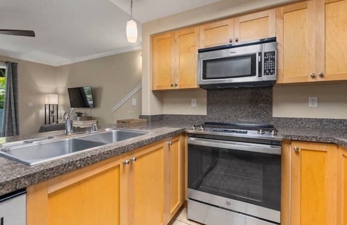 This Villa is located in the quiet neighborhood of Hillside Villas located in Ko Olina Resort. Beautiful 2-story, 3-bedroom, 2.5-bath townhome is fully furnished and ready to move in, sleeps 6 comfortably. Two parking with a 1-car garage and driveway parking, vinyl plank flooring, new washer, dryer, and dishwasher.