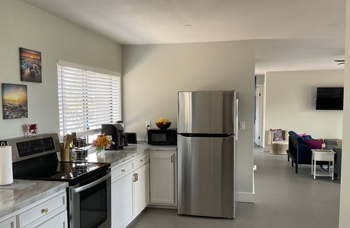Experience the 'Aloha Spirit' at this 2 bedroom, 1 bath 1200 square foot home. Located in Ocean View, a suburb of Capitan Cook. The southern part of the island. This roomy, remodeled guesthouse, with a private entry, also has a fully equipped kitchen.