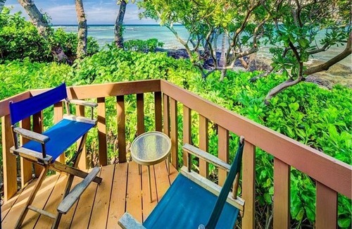 Perfectly sited for dramatic views and private access from the yard to the ocean, this double A-frame home sleeps six in one of the best seaside locations in Puako. Rough-hewn vaulted ceilings with tall windows frame views of Maui, the Kohala Mountains and Puako Bay. Relax in one of several outdoor choices: a front lanai, or a wind-protected sun bathing deck. Watch your children play in the grassy yard shaded by mature trees and shrubs. The balcony, part of the separate Primary suite, offers private viewing of Hawaii’s spectacular Pacific sunsets. You’ll be within walking distance of the charming Puako General Store and handy to excursions to Waialea Bay and Hapuna Beach, often rated among the world’s best beaches.