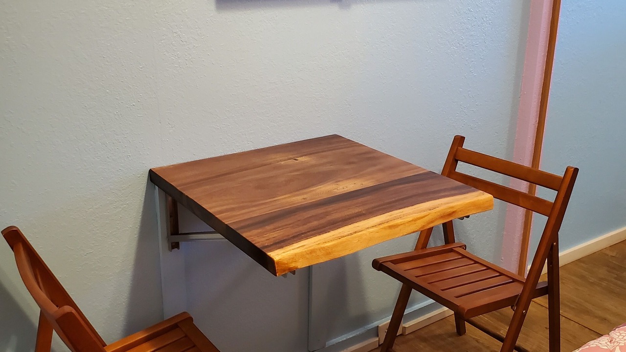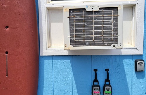 This comfy, budget upstairs unit offers a dedicated queen bed, 50” TV, murphy-style retractable table with chairs for two, a well-stocked micro kitchenette, steady hot water showers,expanded closet space, a strong WIFI signal and four free streamers. You’ll also find extra linens in an external linen locker.
