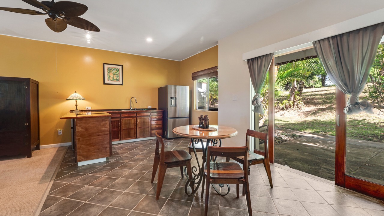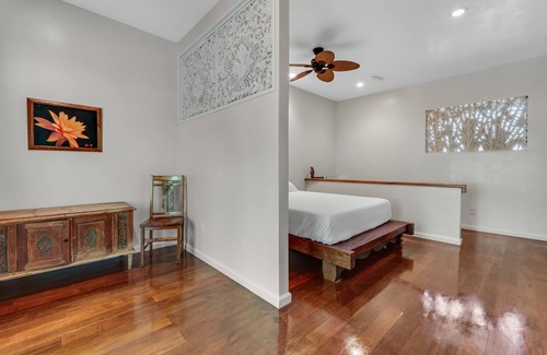 This two-story Ohana suite shares its property with a main home, which sits just across a covered dining patio. It's a wonderful setting for your adventures across the Big Island, whether you're exploring the native arboretum at Kalopa State Recreation Area (three miles), visiting the farmers market in Honokaa village (less than four miles), or taking a memorable day trip to Waipi'o Black Sand Beach (13 miles).