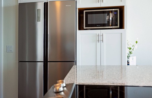 The kitchen has stainless steel appliances and is fully equipped with cooking utensils, pots, pans, blender and all of the other essential supplies to comfortably enjoy cooking and eating in. (Even a Keurig for you coffee lovers!)There is also a great BBQ area oceanfront so you can enjoy the view while you cook.