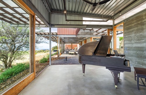 Spectacular modern home with panoramic views, a solar heated pool and secluded privacy near the town of Waimea. An architectural gem, the Akamai House was built with board-formed concrete, high ceilings, floor-to-ceiling windows and retractable walls to create a customizable indoor-outdoor living experience. Located on Keanuiomano stream, the home offers lawn space, seasonal ponds and unobstructed views of the Big Island's volcanic peaks and the Pacific Ocean.