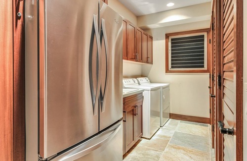 This Puako estate home on the Kohala Coast of the Big Island is a short drive from other stunning stretches of sand such as Hapuna Beach, and the area's sunny weather and clear waters make it an ideal location for snorkeling and scuba. Beach towels, chairs, umbrellas, and coolers are provided, along with boogie boards and snorkel gear. Attractions such as tide pools and the Puako Petroglyph Park, a fascinating archeological preserve, are nearby.