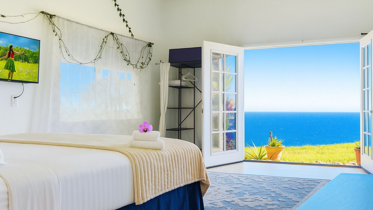 This gorgeous guesthouse with a panoramic ocean & sunrise view has everything you need for a comfortable stay.
