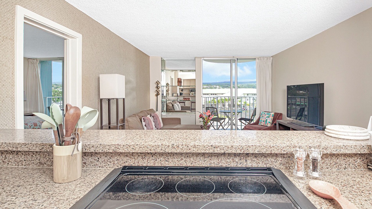 There is a fully equipped kitchen with stove/range, microwave, full size refrigerator, toaster, and plenty of plates etc. for 4 guests. There are also three small balconies to dine al-fresco and enjoy the view. There is one dedicated parking space, elevator, and outdoor condo pool.
