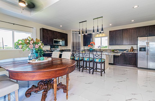 Experience centrally located and comfortable living staying at our Hilo Town Center Ohana! Our newly built 5 bedroom 4 bath duplex home with 2 separate entrances and 2 private living spaces. You will be just 3 miles from Hilo airport, Liliuokalani Park, beaches and Gardens. This spacious house sleeps up to 12. Perfect for big family, group travel or work team. Property manager on site