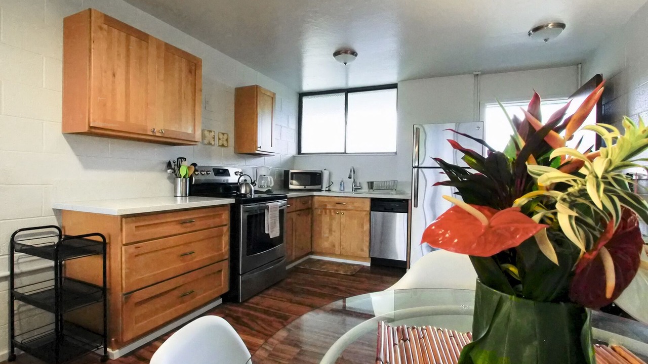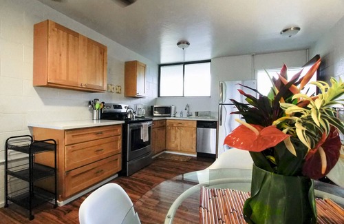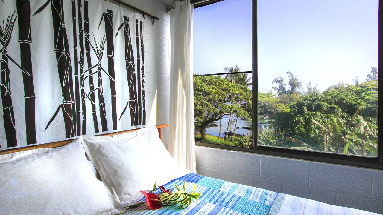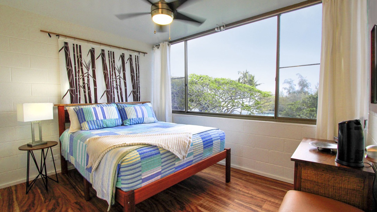 Beautifully decorated and furnished, Finest in the Mauna Loa Shores..Best view of the Carlsmith Beach Park next door. Your bed overlooks the waves. The ultimate place for your Hilo stay. Mauna Loa Shores is ECO friendly solar powered electric!!!! You will absolutely love the condo, the amenities, the views, our Hilo town. Our piece of paradise awaits your stay. 1brm 1bth with queen size bed in brm. Full Kitchen, wifi, this condo has it all. EVEN smart TV with Netflix, Hulu, Amazon, etc. BUT the ultimate feature is Carlsmith Beach Park right next door is the best for swimming and snorkeling. Almost always sea turtles. EZ access to ocean, protected reef. Beautiful lawn with huge trees, Tide pools. Truly one of the finer spots on any of the Islands.