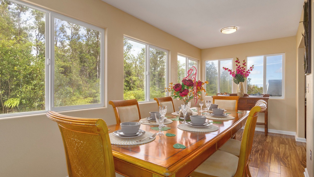 The home was custom built in 2007. Mountain View is a central location to Volcano National Park, Hilo Town and Pahoa Town, and the southeastern corner of the Big Island where recent lava flows claimed hundreds of homes (specific location of property is at vey low risk of lava flow).