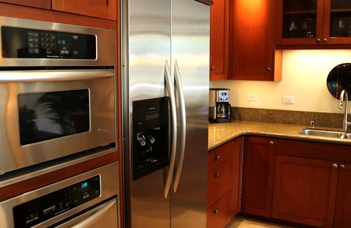 The master bedroom includes a California King bed, the second bedroom consists of two twin beds and we have also added extra comfort with a Queen/Sofa Sleeper in the Living Area. Our Villa includes both Air Conditioning and Fans in both bedrooms and living room. The gourmet kitchen includes granite counter tops, gorgeous cabinetry, new stainless steel appliances. The master bedroom includes a separate over size shower, natural stone finishes and a luxurious oversized soaking tub. The second bath has a stand-alone shower and bathtub.