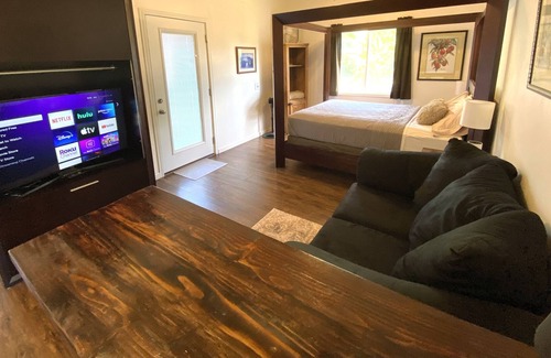 Take it easy at this unique and tranquil getaway. Beautiful North Shore studio nestled on a private property just a 5 minute walk from the beach. Perfectly located allowing you to access amazing hikes and beautiful beaches around the island.