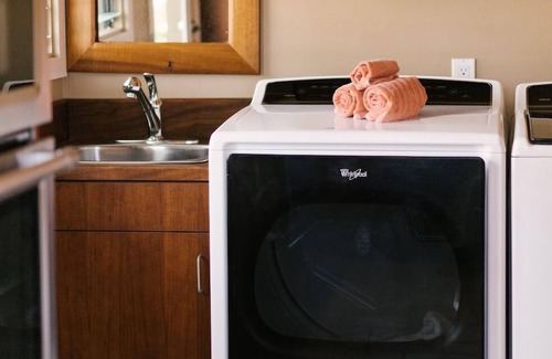The spacious kitchen and separate dining area are equipped with modern appliances and stocked with everything you need from pots and pans to coffee makers and blenders. The open living room has a large TV, Samsung Soundbar bluetooth speaker, and games for the whole family!
