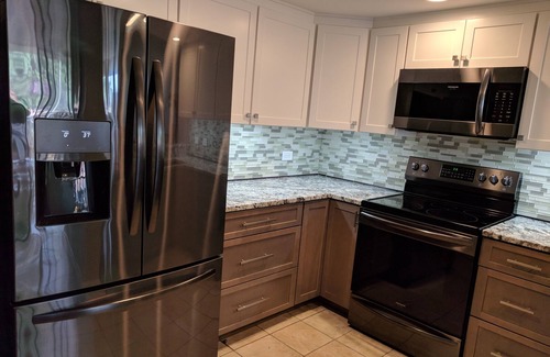 Both of the spacious bedrooms have brand new wood floors, a king size bed, with newer very comfortable mattresses and a full on-suite bathroom. Two additional guests can get sleep comfortably on the queen size cabinet murphy bed with premium mattress in the living room. With 3 full bathrooms, unlike most condos, it won't take forever to get ready for dinner after a day at the beach, pool, or sight seeing. Brand new full size washer and dryer make it easy to manage your laundry.