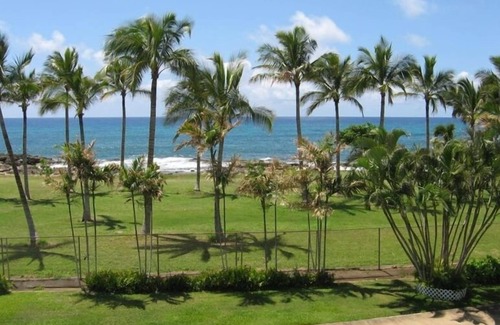 An Ocean Front location with unobstructed ocean view, a gate to a coved white sand beach for swimming, snorkeling, palm trees and lovely grounds. This updated cozy 412 square ft. one bedroom condo is located in the countryside 30 minutes from Honolulu Intl. Airport, 45 min from Waikiki, with secured covered parking, two swimming pools, and Bar-b-que area..