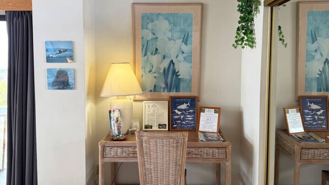 This property is a private 2nd floor penthouse with its own entrance, ensuring a peaceful and independent stay. Enjoy the well-equipped kitchenette, including a refrigerator, Keurig coffee maker, toaster, microwave, hotplate with eating and cooking utensils. There is a private, spacious double sink bathroom, stocked with shampoo, conditioner, body soap, and a hair dryer for your convenience. Relax with a Smart TV, WiFi, and expansive views from the wrap-around porch. We also provide complimentary beach towels and chairs along with free parking for your comfort and ease.