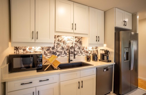 All rooms are equipped with ceiling fans for your comfort. Bedrooms have air conditioning. Most art featured in the space is by local Hawaii artist Rachel Roehl. Host/owner Phil has a 12-lb miniature Australian shepherd that lives part time at the property. He’s a sweet baby angel but if you prefer to not interact with the puppy, let him know and Phil can keep him in the back.