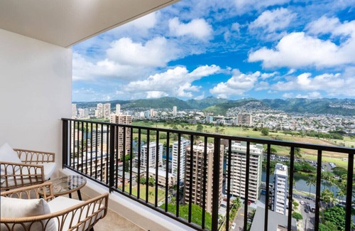 Experience the newly renovated corner unit at Waikiki Banyan, with stunning 270° views of the Koʻolau Mountains, Koko Head, Diamond Head, and the Honolulu skyline from a private 28th-floor lanai. Revel in breathtaking sunrises and vibrant rainbows.