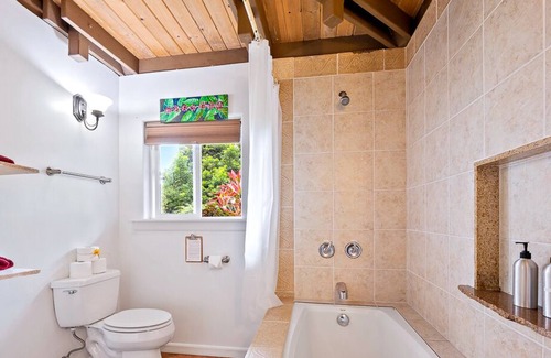 Summary: This cottage is nestled into a cloud forest in the Kona Coffee region, just a few minutes drive from downtown Kailua-Kona. The host's instructions were perfect to find the place (watch out for the speed bumps on the way!). The cottage was adorable, clean, fresh, and tucked in a peaceful location where we were serenaded by birds and frogs and even geckos every morning and night, and surrounded by flowers and fresh mountain breezes. Watch the spectacular sun sets over the sea from the tranquility of the cottage grounds, or drive a few minutes to a scenic overlook or directly to the coastline! The host was easy to get in touch with, and went above and beyond with including a starter sample pack of sunscreen and bug repellent, and gave us tips on art classes and local-area Latin and swing dancing events. The outdoor Jacuzzi with a waterfall was also amazing and refreshing after hiking or other day trips adventures. Highly recommend!!