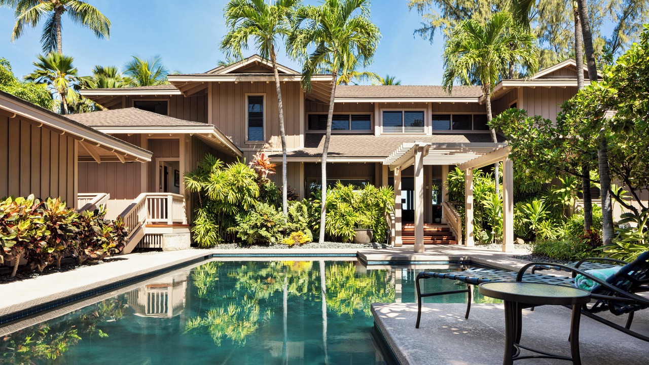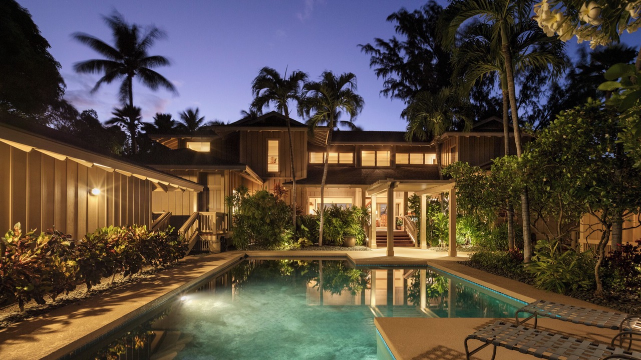 Stately and serene, THE HOME OF THE HULA MOON is one of the most beautiful contemporary oceanfront properties in PUAKO. Each bedroom has a perfect ocean view. Located near the end of the road, you will enjoy year-round sunsets and privacy.