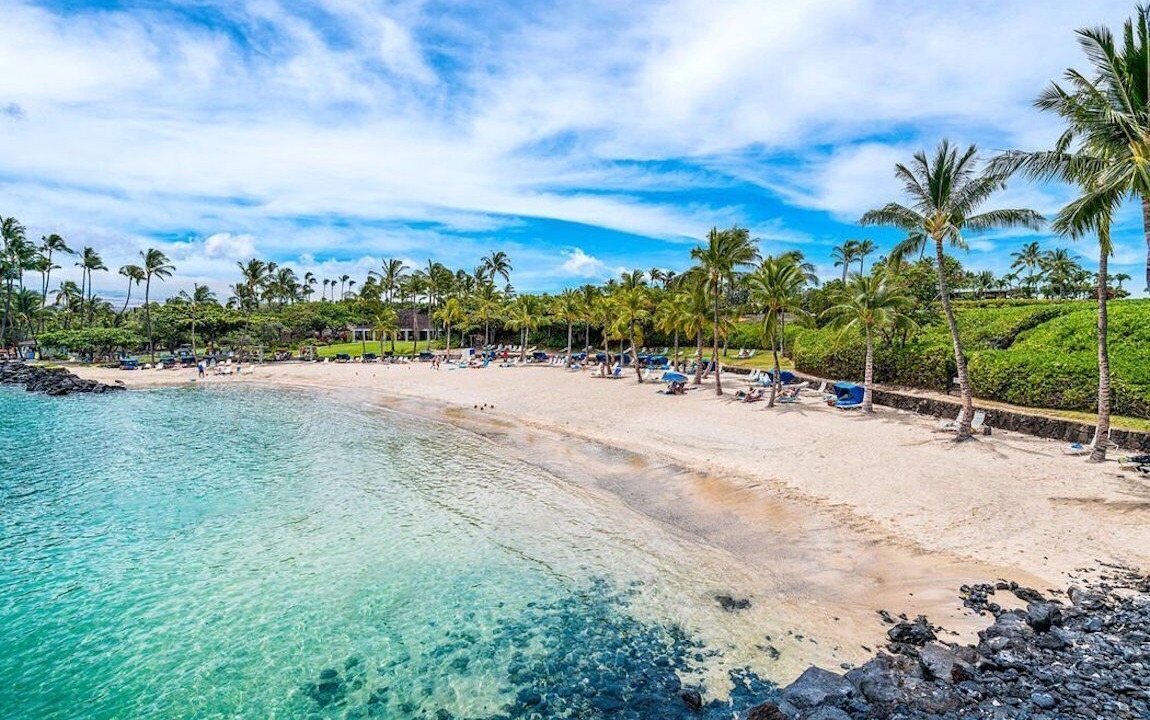 The Bay at the Mauna Lani Beach Club often has calm waters, making it a great place for snorkeling, paddleboarding, and more ocean activities.