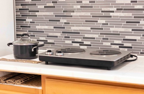 Our guesthouse has two spacious private studio room suites, each with a queen-size bed, storage spaces, clothing rack, complete kitchen amenities, a dining area with a table that seats 3, a cute living room corner, outside shared bathroom, free wi-fi, deck sitting area, and a washer and dryer.