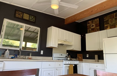 A beautifully quaint house awaits as you explore rural Hawai'i and one of the world's most active volcanoes. Kehena beach is about a mile away where you can swim with wild dolphins, free dive and fish! Kaimu and Pahoa have groceries with a brand new shopping center. The open landscaping provides plentiful, tropical breezes. Uncle Robert's has live music, a bar, food and trinket vendors, dancing and fun for everyone. Dare to discover new tastes and equatorial fruits at local Farmer's Markets.