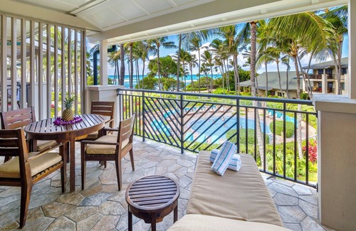 - Large lanai (balcony) with teak furniture.