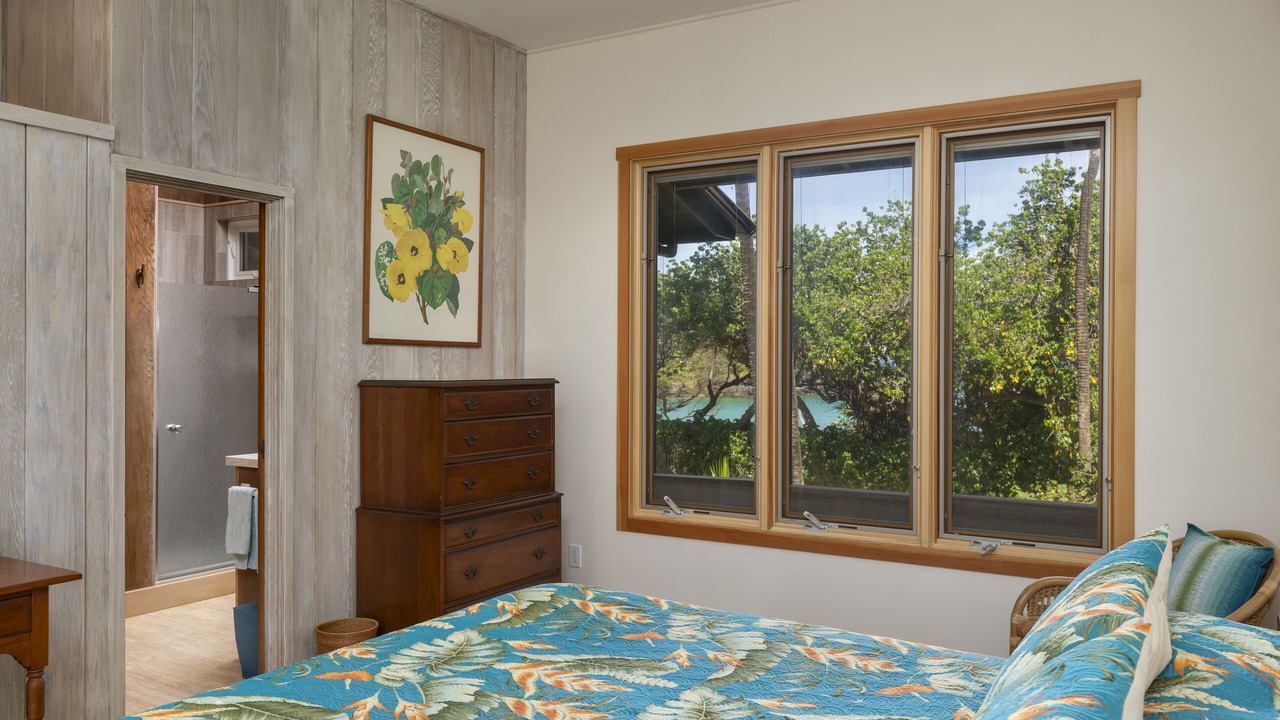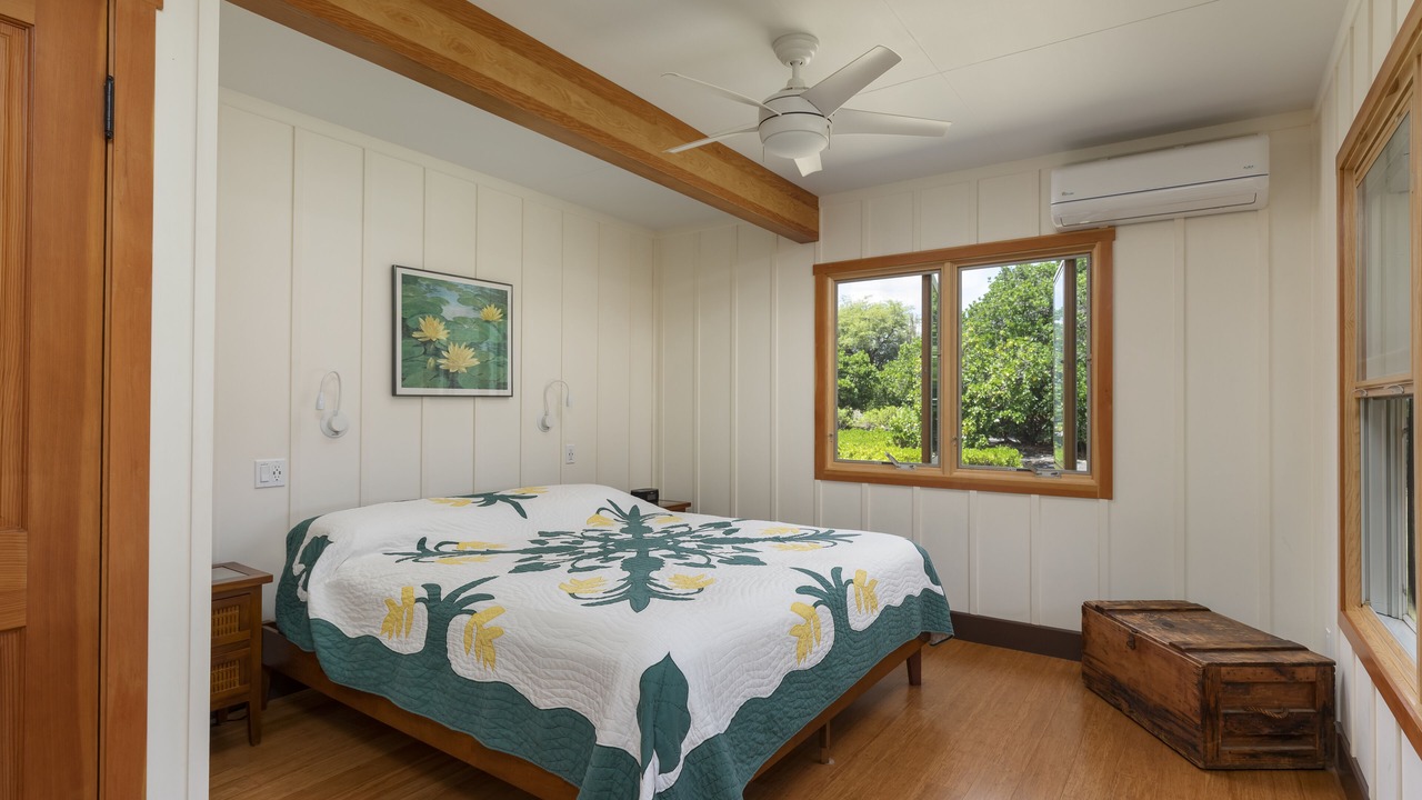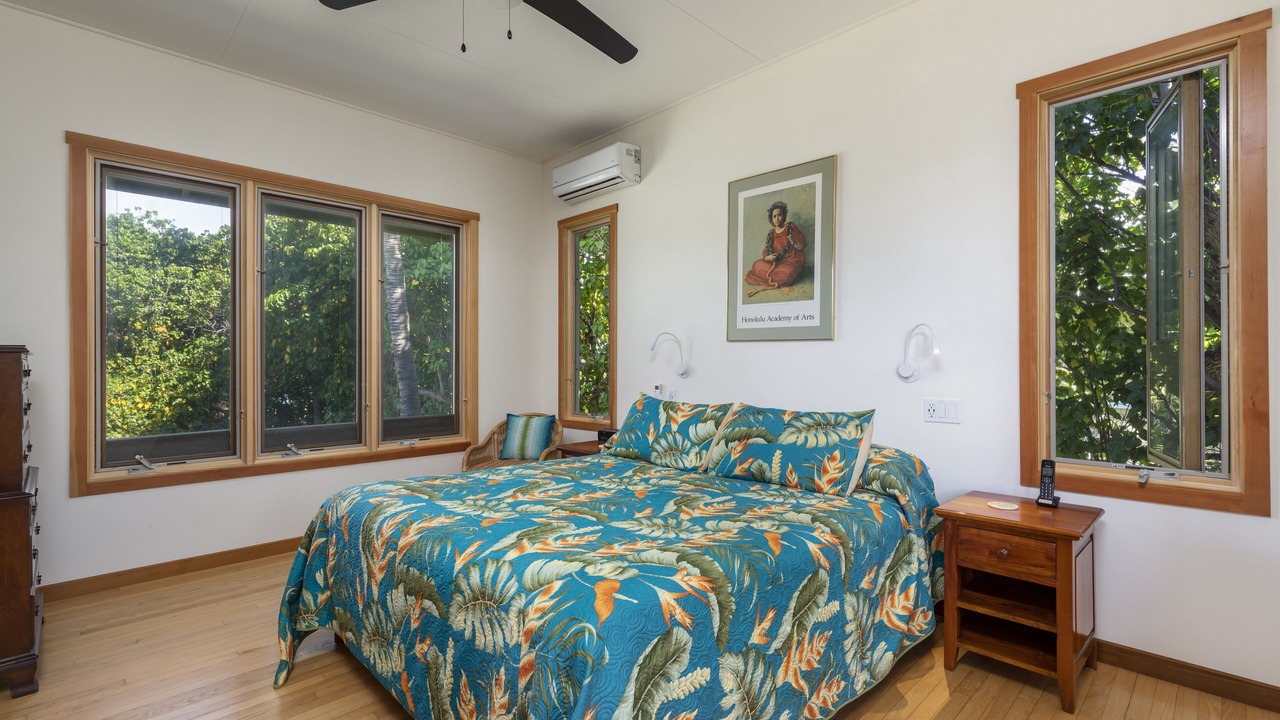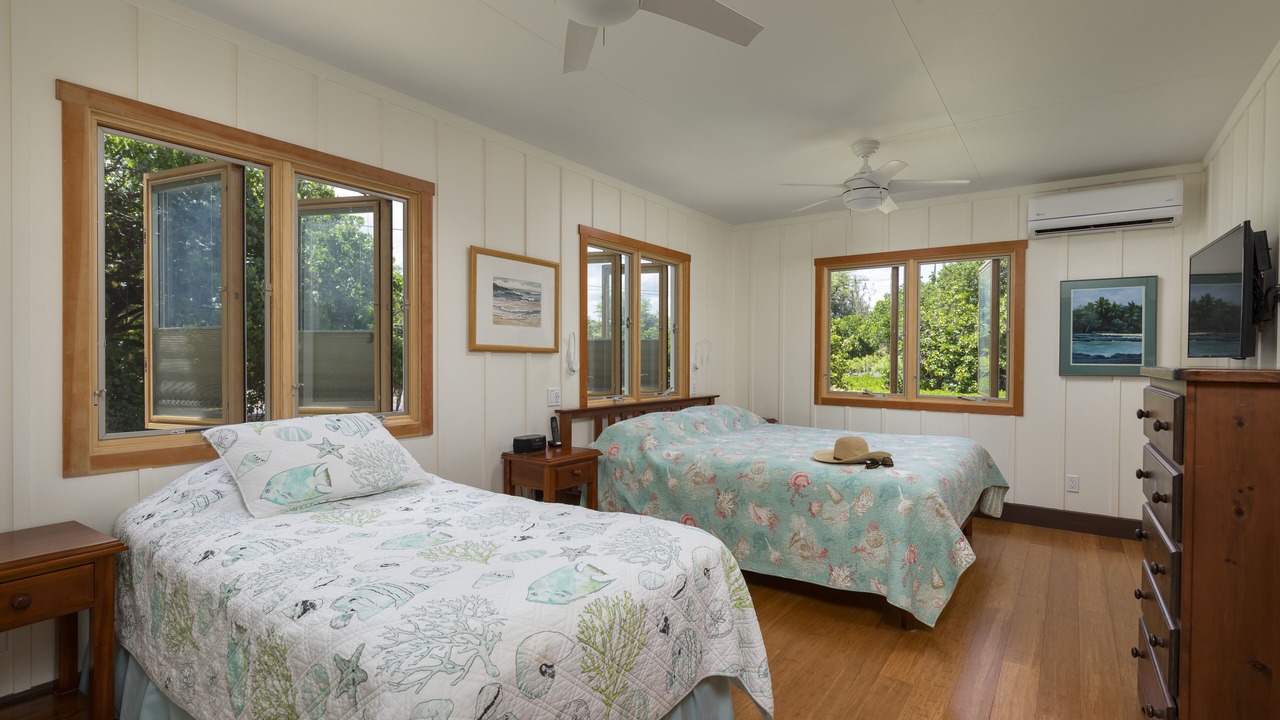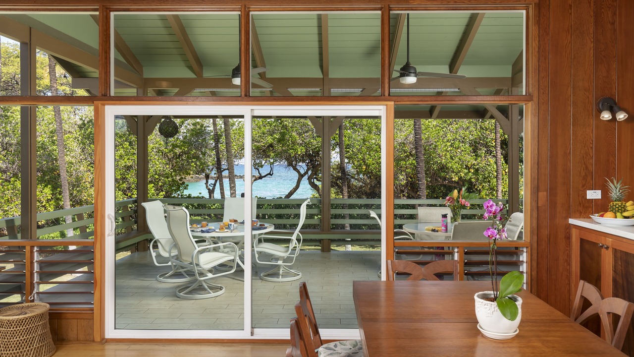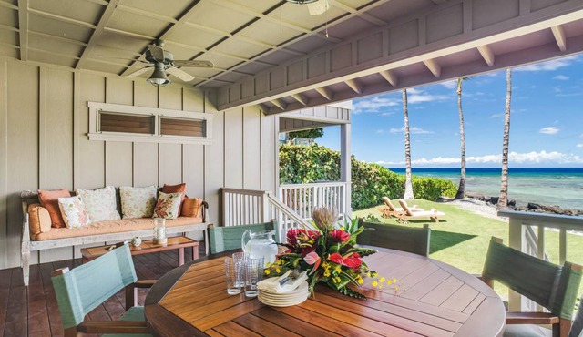 Guest reviews highlight Kolea’s rare combination of peaceful privacy and beachfront access. One raving guest described walking “out the front gate and directly onto the beach” as “an amazing feeling,” while noting that “the upstairs lanai overlooks the ocean but still feels private from the beach because of the vegetation surrounding the property”. The house is complete with AC for those warm summer months.
