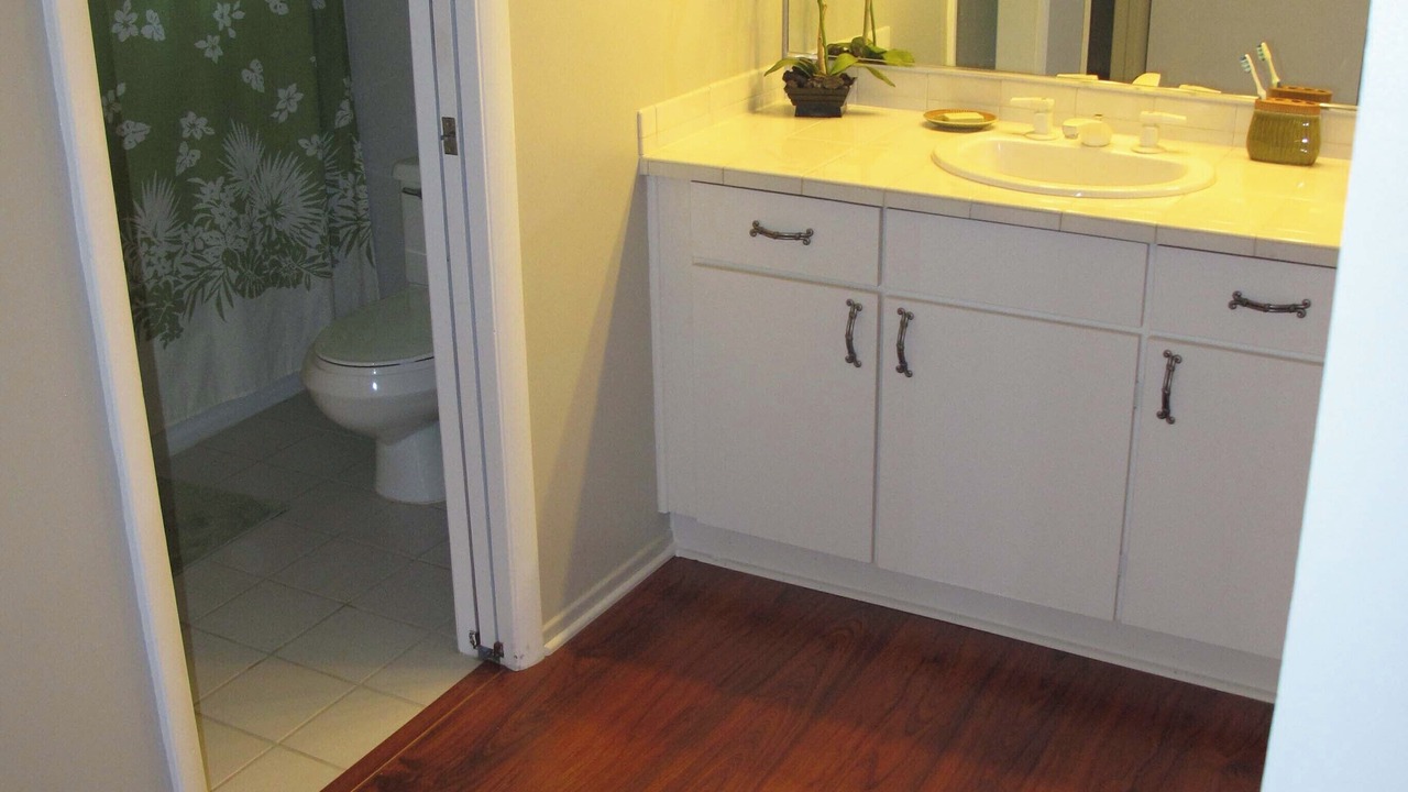 From the moment you set foot in this 3 bedroom, 3 bath, 1300 square foot Condominium, you will be immersed in the “Aloha Spirit”. This corner unit at Waikoloa Greens truly has a beautiful layout. This condo has many upgrades including Brazilian Cherry wood laminate flooring in all of the bedrooms and throughout the upstairs. The living room is laminate flooring as well. Tile flooring appoints the baths and kitchen. Beautiful granite kitchen counters and upgraded appliances. Many more upgrades as well.