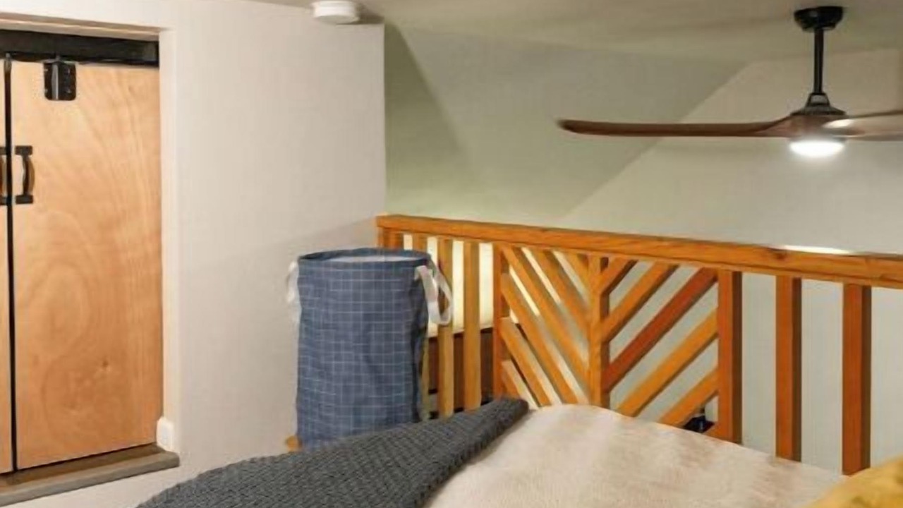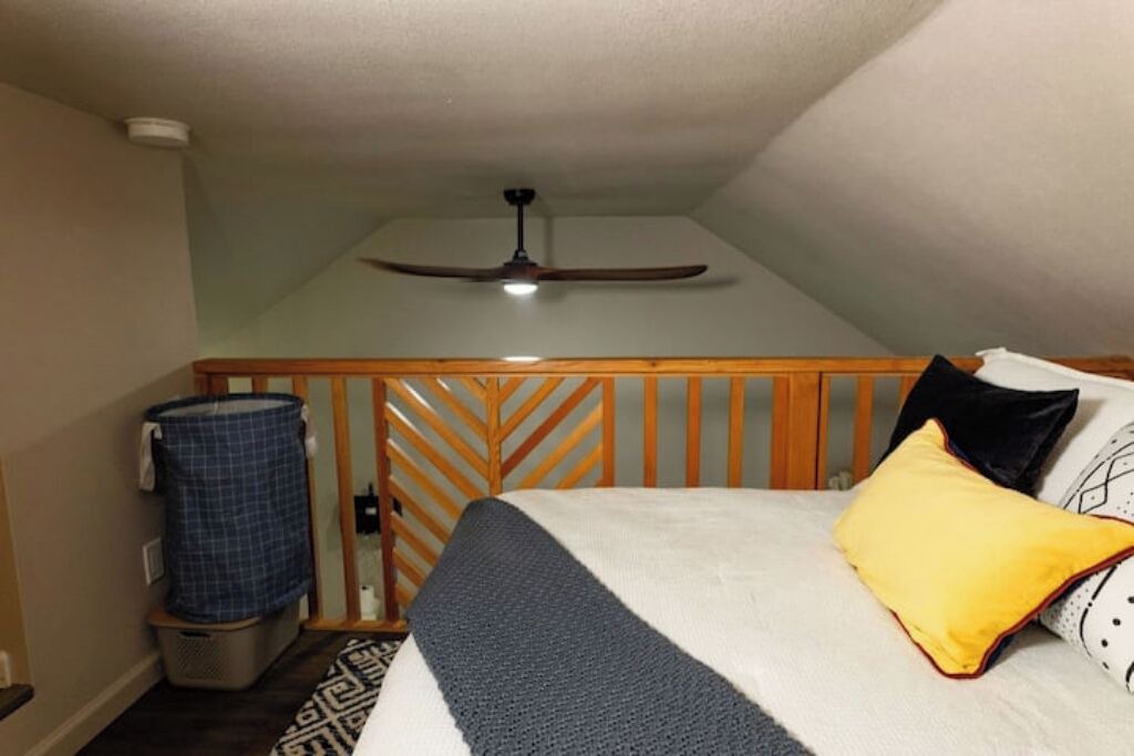 The Studio is NOT for young children. There are floating stairs and an open area in the loft. A comfortable full bed is located up the stairs in the loft, and a queen-sized sofa bed is on the bottom floor. Guests must be able to walk up the stairs. The loft is meant for sleeping with a standing clearance of about 5 feet 6 inches.